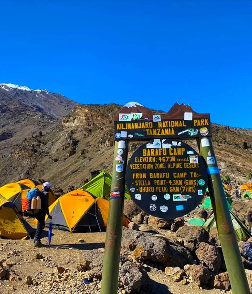 If Marangu is the “Coca Cola” route, then the Machame Route is the “Whiskey” route. It is the second most popular and one of the most scenic routes on the mountain. It is done over 7 days, so acclimatization is easier, and the success rate is fairly high. It is for physically fit people with some hiking experience. Descent is down the Mweka trail staying at the Mweka or Millennium camp the final night on the mountain.